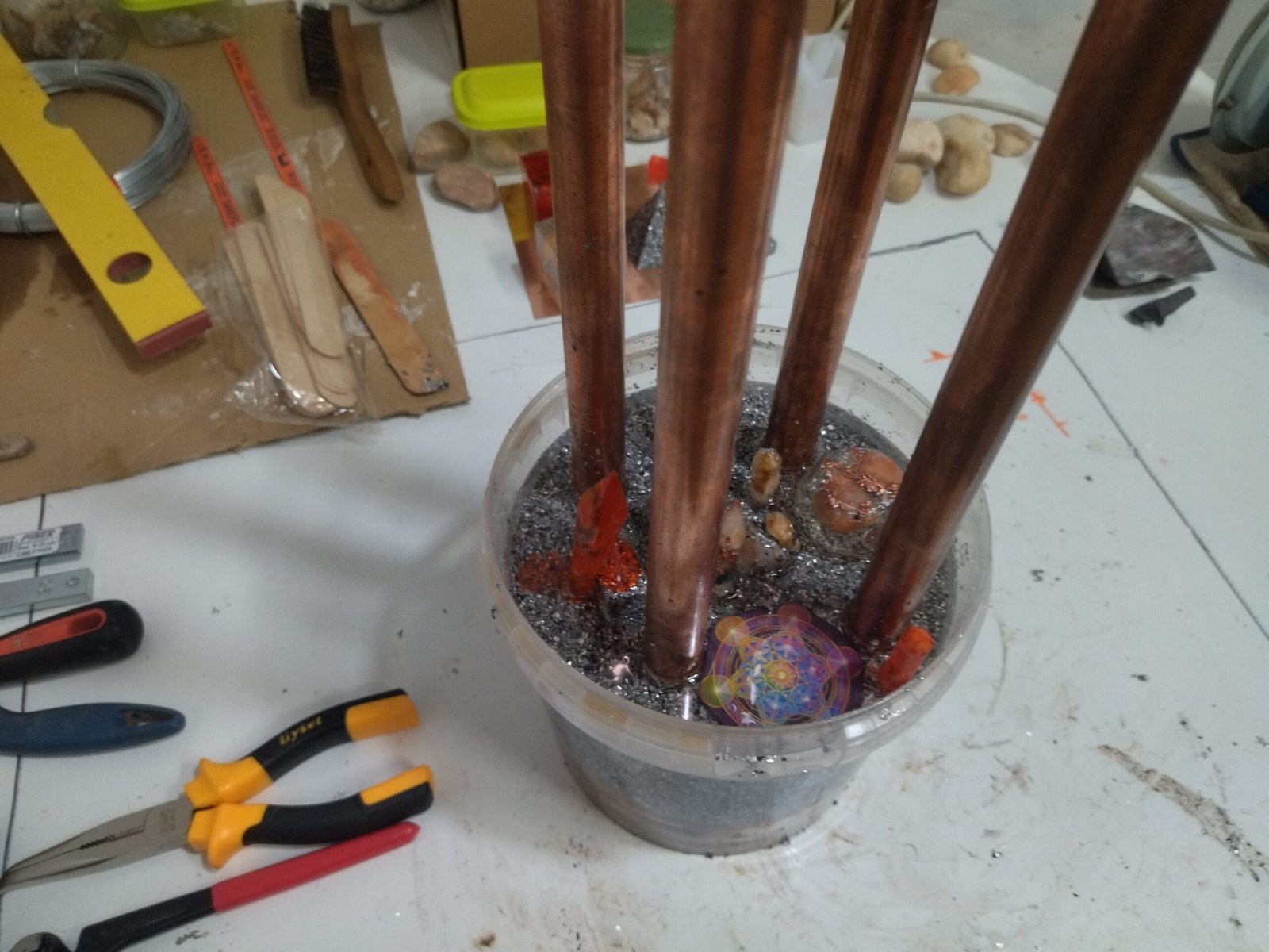 Los materiales utilizados para la construcción del Cloudbuster son: Shungita, turmalina negra, cuarzo comprimido para aumentar la presión, Tartrato de potasio y sodio Tetrahidratado, viruta de aluminio, resina , tubos de cobre, materiales de decoración, toma tierra enterrado (ya que pueden llegar a un potencial de 20.000 voltios -aumentando en una corriente de agua-.
